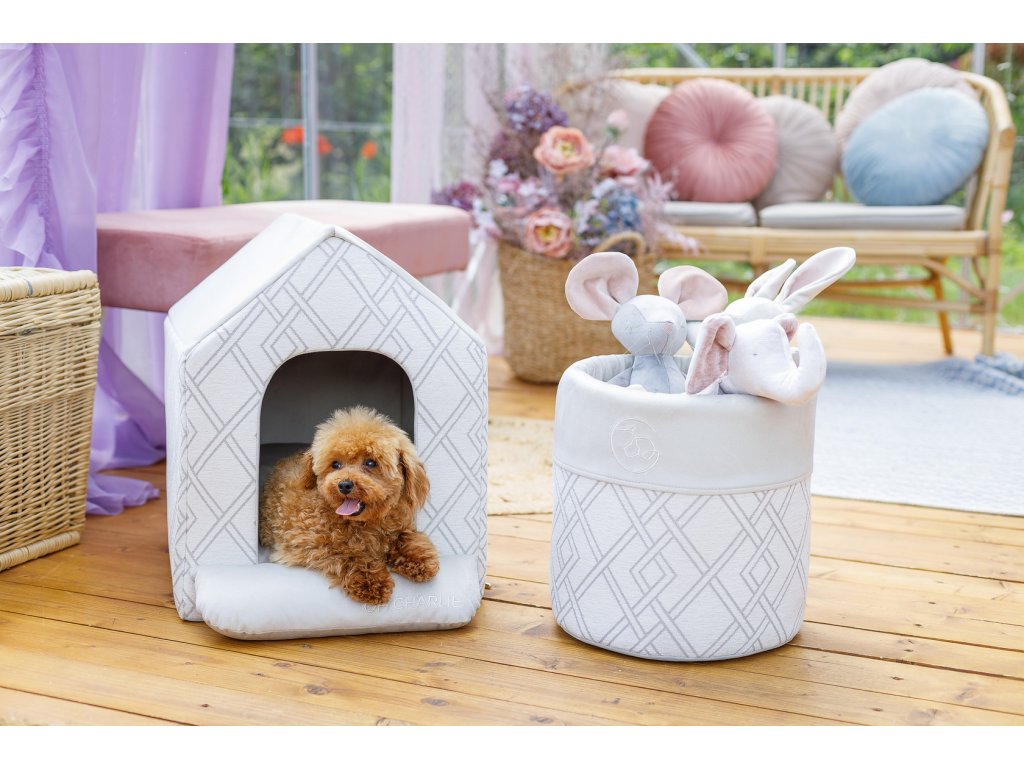 Útulný, měkký domeček poskytne vašemu domácímu mazlíčkovi chvilku klidu a ticha od okolního hluku. Potěší i vás – svým designem zkrášlí vzhled každé místnosti. Stejně jako všechny výrobky od Oh Charlie, byl i tento domeček vyroben s maximální pozorností věnovanou každému detailu.