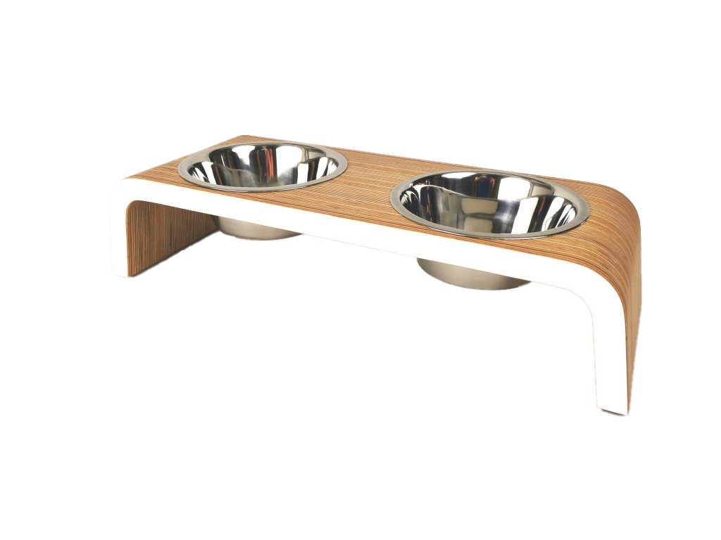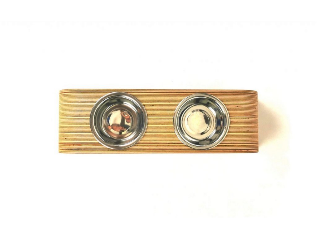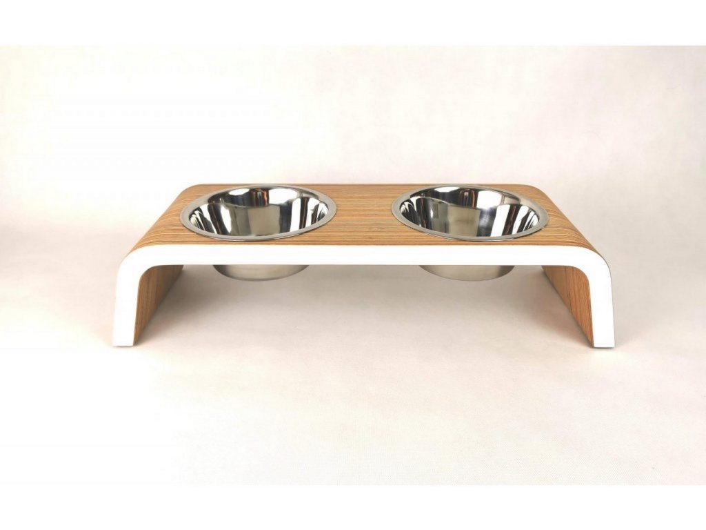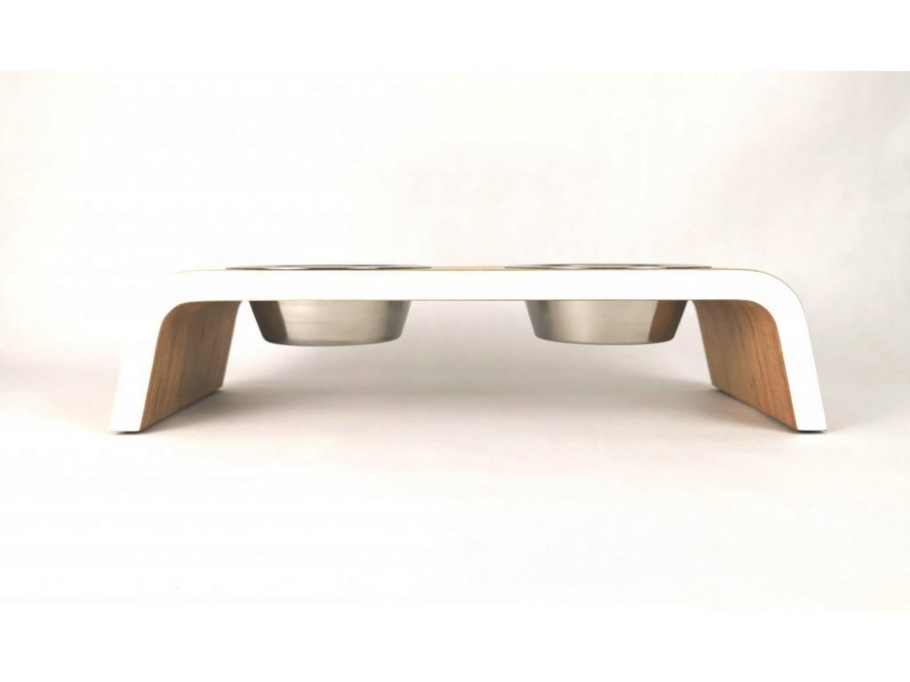 Minimalistický tvar stojanu zajišťuje stabilitu a pohodlné krmení psa v přirozené výšce, čímž přispívá ke zdravějšímu držení těla při krmení. Součástí jsou dvě odolné nerezové misky, které jsou hygienické, snadno se čistí a lze je bezpečně mýt v myčce. Spodní strana je vybavena protiskluzovými gumovými nožičkami, které chrání podlahu a zabraňují pohybu stojanu během krmení.