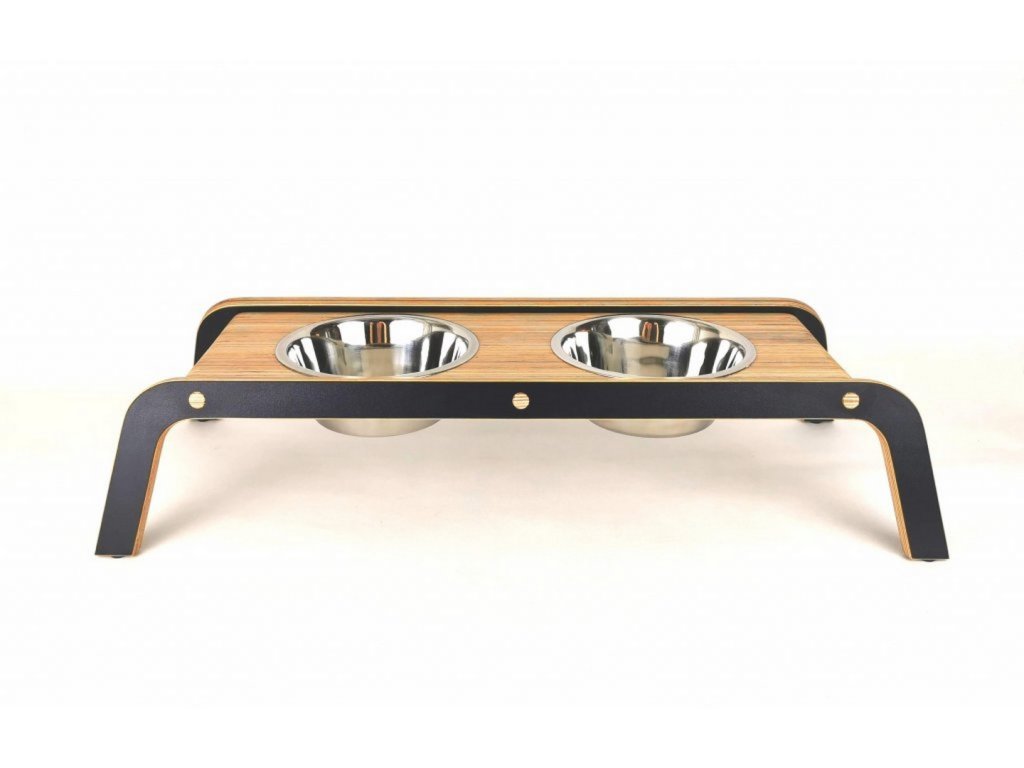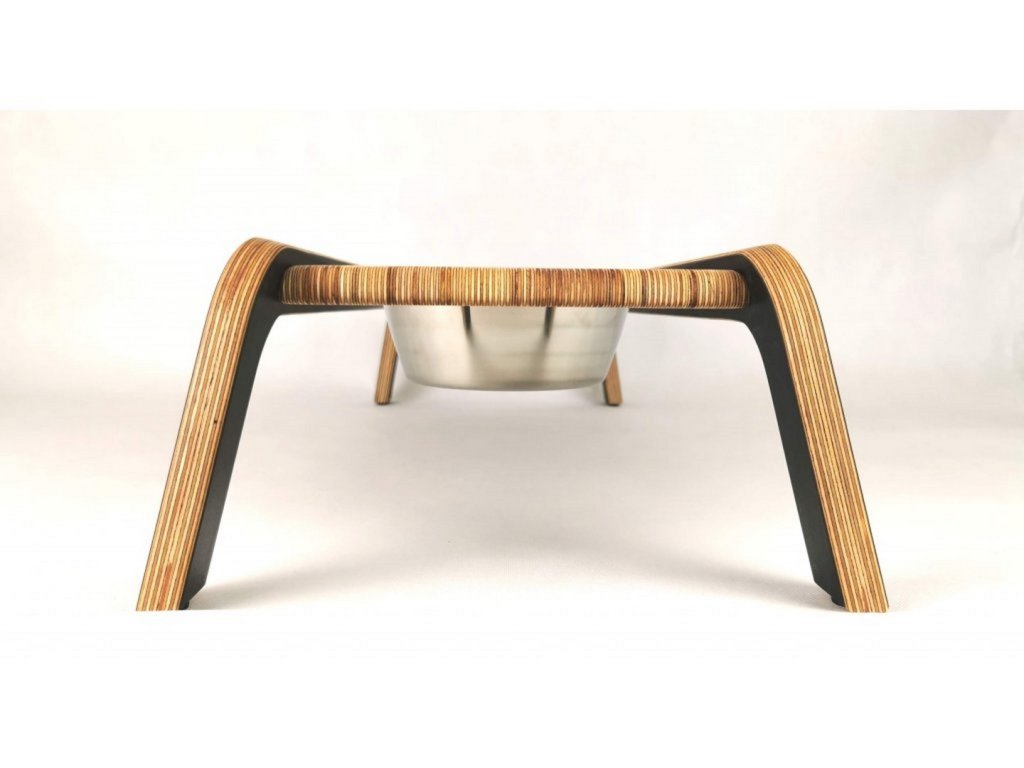 Dvojitá zaoblená miska pro psy Table spojuje čistý design, funkčnost a ekologické materiály do elegantního celku, který se stane přirozenou součástí moderní domácnosti. Stojan je vyroben z vysoce kvalitní březové překližky a ručně opracován s povrchovou úpravou přírodním voskovým olejem, jenž chrání dřevo a zvýrazňuje jeho přirozenou kresbu. Povrch zakončený černým laminátem dodává misce svěží a nadčasový vzhled, díky němuž nepůsobí pouze jako praktický doplněk, ale i jako designový prvek interiéru.