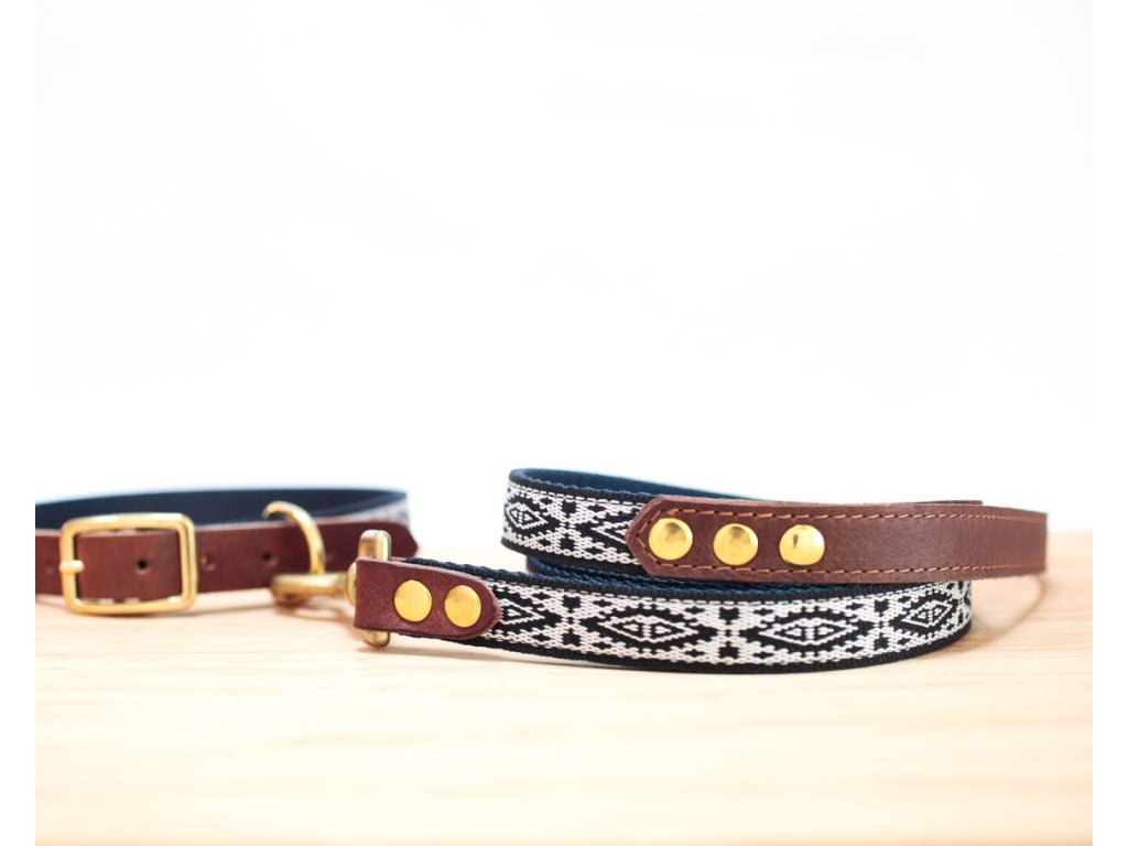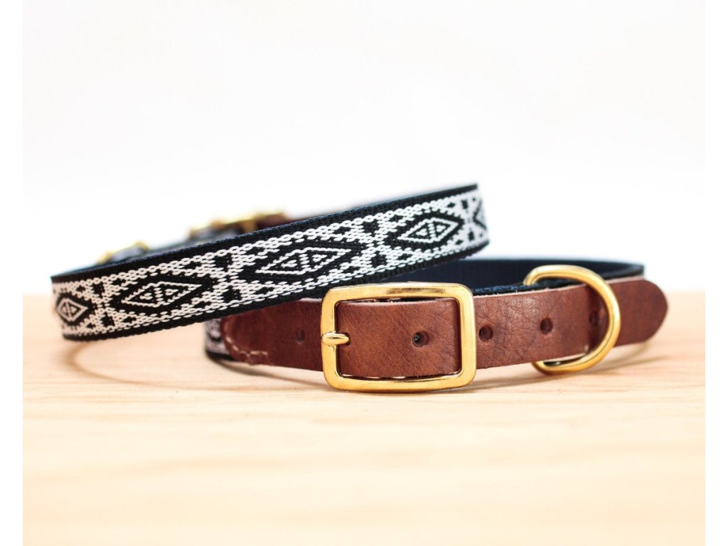 Kožený prošívaný obojek pro psy Navajo černo bílý 3/4´´