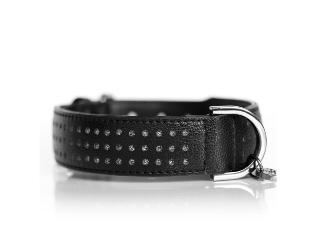 Tento luxusní obojek pro psy z imitace zrnité kůže zaujme na první pohled svým elegantním leskem a jemnými titanovými třpytkami, které dodávají celku exkluzivní charakter. Precizně rozmístěné titanové kovové ozdoby vytvářejí sofistikovaný efekt, jenž působí luxusně, ale nepřehlušuje čistý design. Obojek je ideální volbou pro majitele, kteří chtějí svému psovi dopřát stylový doplněk s nádechem glamour.