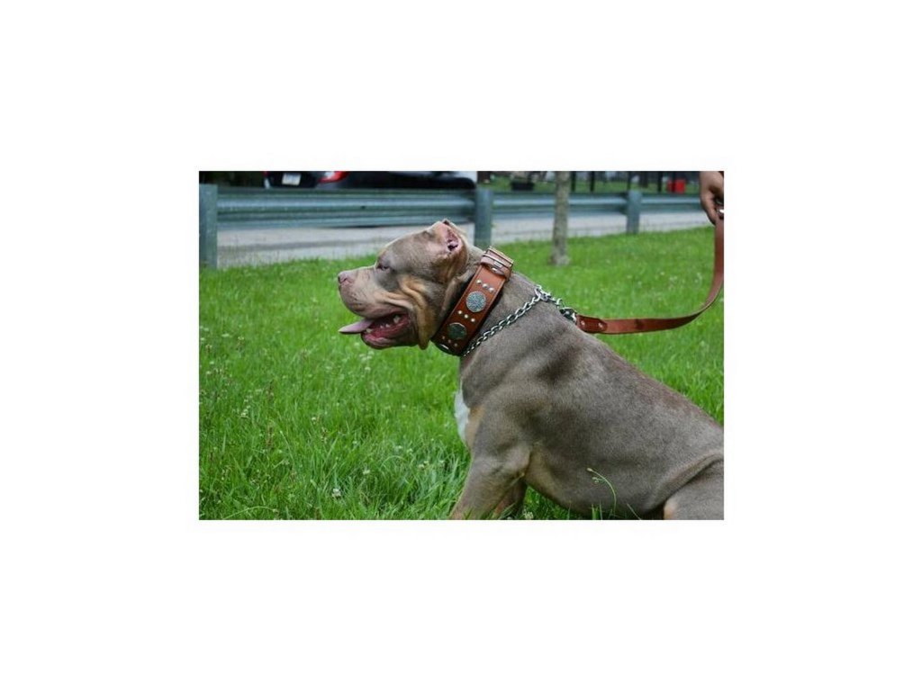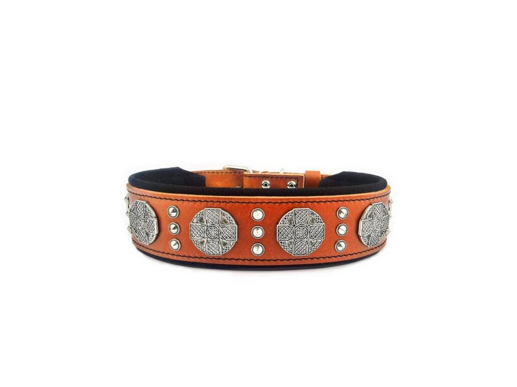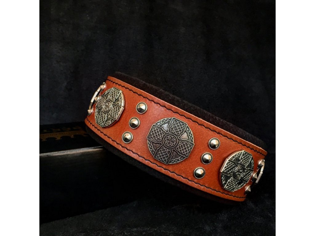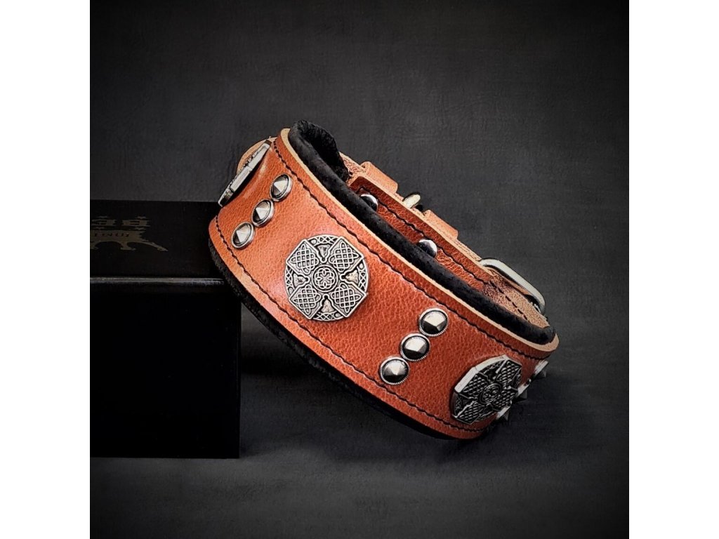 Design obojku je doplněn kombinací dvou druhů nýtů ve starožitném stříbrném odstínu, které dodávají obojku výrazný a luxusní charakter. Každý detail je ručně zpracován s maximální precizností.