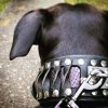 Tento ručně vyrobený obojek má jedinečný design a exkluzivní vzor hadí kůže zdobený stříbrnými nýty.