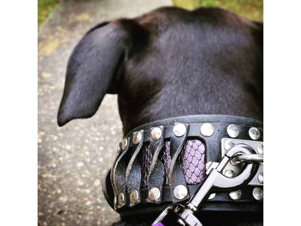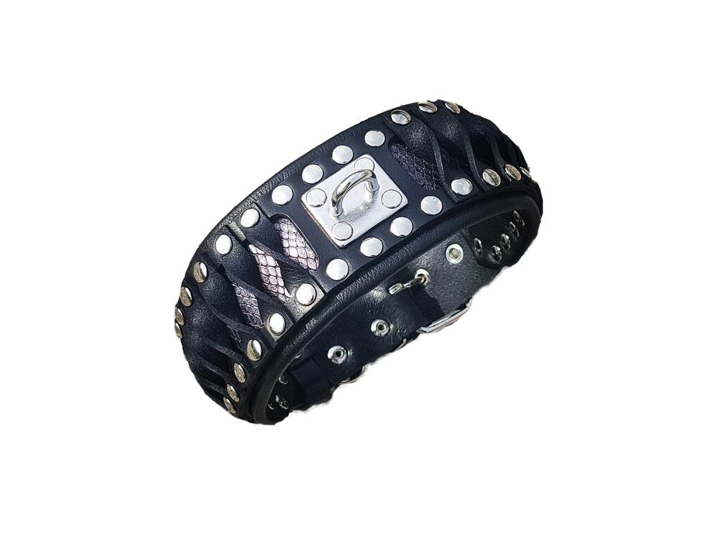 Obojek Steampunk je výrazný módní doplněk pro psy, kteří se nebojí vystoupit z davu. Je určen pro střední až velká plemena a zaujme na první pohled svým hadím vzorem v kombinaci se stříbrnými nýty.
