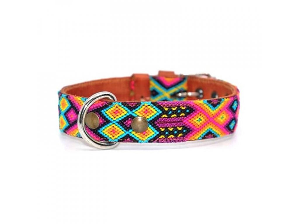 Obojek KINAKU Merida je víc než jen psí doplněk. Je to ručně vyráběné umělecké dílo, které spojuje tradiční řemeslo, etický původ a moderní styl. Každý kus je vyroben z pravé hovězí kůže a zdoben barevnými vzory inspirovanými kulturou domorodých komunit v Mexiku.