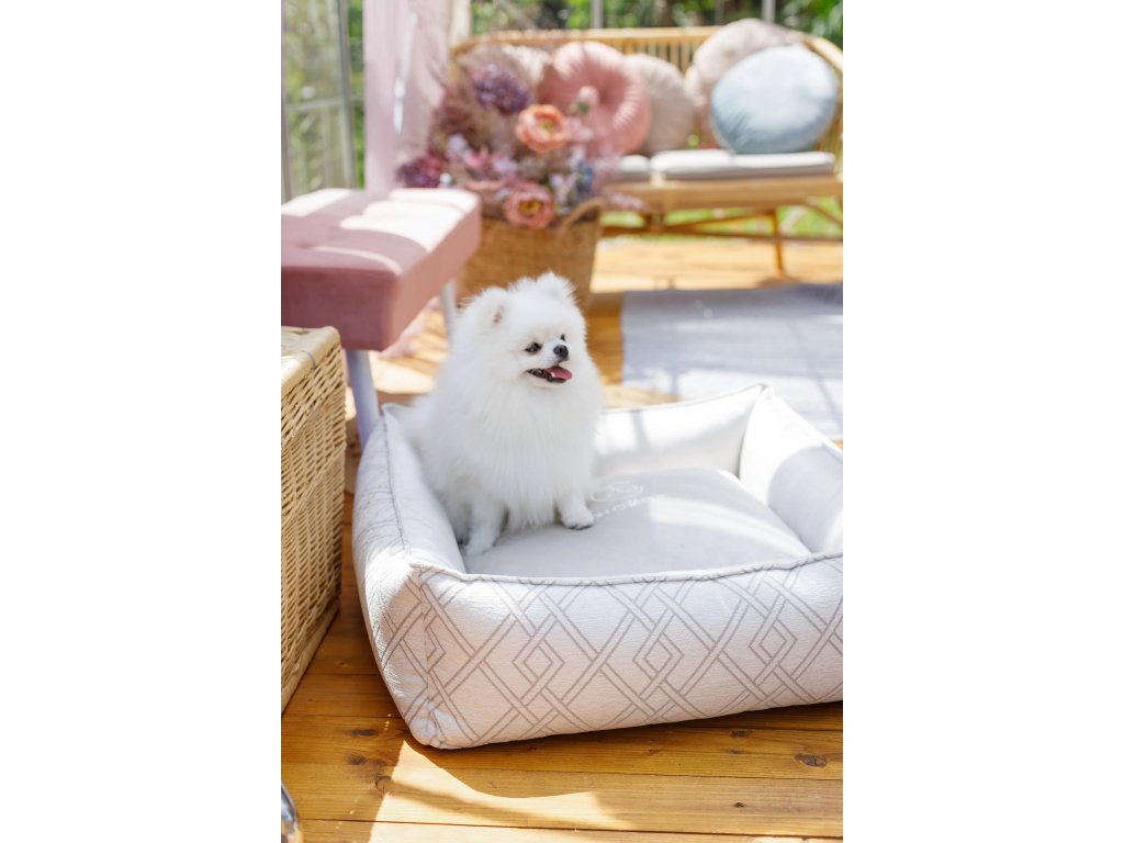 Každý detail byl pečlivě navržen s důrazem na estetiku i funkčnost. Minimalistický design, jemné linie a prémiové materiály vytvářejí pelíšek, který se stane přirozenou součástí vašeho interiéru. Ekrůový odstín doplněný jemnými geometrickými vzory po stranách působí elegantně a čistě, aniž by rušil harmonii vašeho domova.