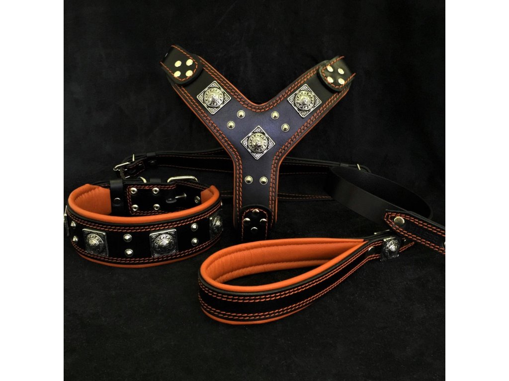 Postroj - Obojek - vodítko SET Bestia Collars "Eros" černo oranžový
