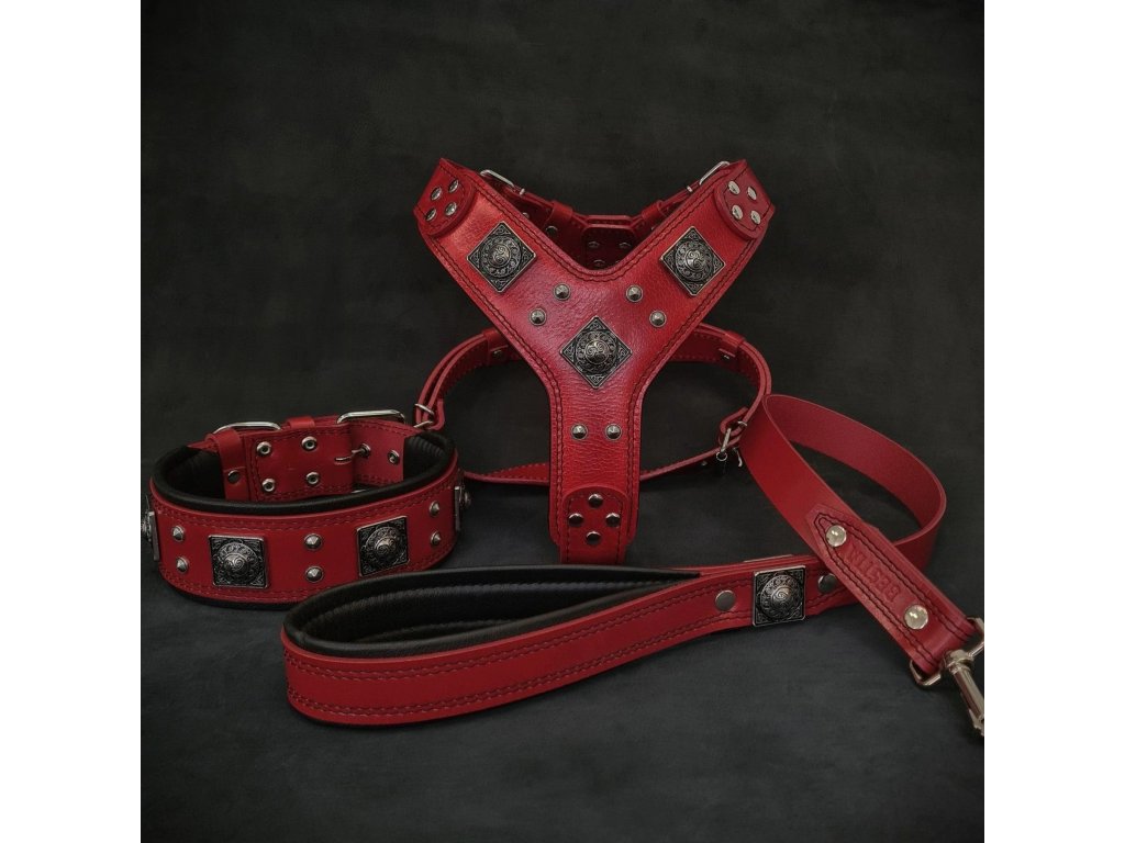 Postroj - Obojek - vodítko SET Bestia Collars "Eros" červený