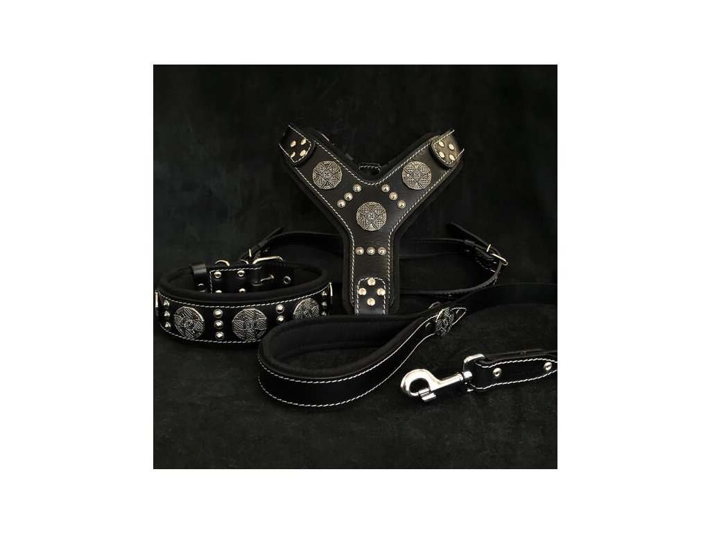 Postroj - Obojek - vodítko SET Bestia Collars "Maximus" černo stříbrný