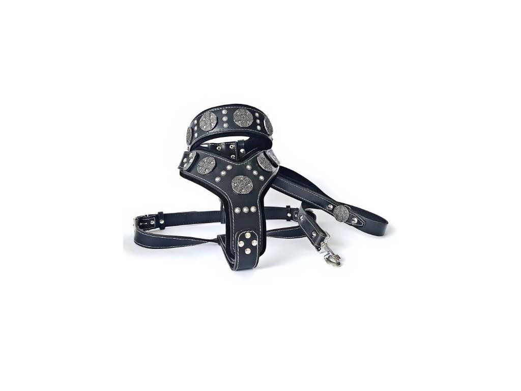 Sada „Maximus“ představuje dokonalé spojení síly, pohodlí a stylu. Postroj, obojek i vodítko jsou ručně vyráběny z pravé kůže, doplněné o stříbrné kovové detaily a měkké polstrování. Společně tvoří elegantní a harmonický set, který zaručí nejen perfektní vzhled, ale i bezpečí a komfort pro vašeho psa.