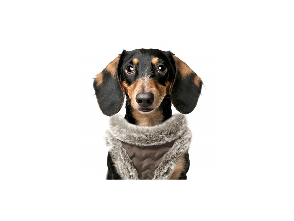 Elegantní postroj pro malé a střední psy, který spojuje styl, komfort a praktičnost. Vyrobený z kvalitního prošívaného hnědého polyesteru s glazovaným efektem a vodoodpudivou úpravou poskytuje spolehlivou ochranu před vlhkostí i za deštivého počasí. Hebká podšívka a jemné lemování z fantasy kožešiny v hnědo-taupe odstínech zajišťují maximální pohodlí při každém pohybu. Titanově zbarvená kovová spona a přezka dodávají postroji moderní, luxusní vzhled, zatímco popruh z černé semišové koženky působí elegantně a odolně zároveň. Stylový detail v podobě titanové plakety s logem Milk&Pepper podtrhuje prémiovou kvalitu značky. Praktické zapínání na široký suchý zip usnadňuje nasazování a zajišťuje, že postroj vždy perfektně padne a bezpečně drží i během aktivních procházek.