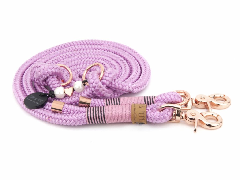 Elegantní doplňky, jako jsou kovové karabiny v lesklém provedení a dekorativní prvky s perlami, dodávají vodítku styl, který ocení každý milovník designu. Je tak nejen praktické, ale také krásné – perfektní pro procházky městem i víkendová dobrodružství v přírodě.